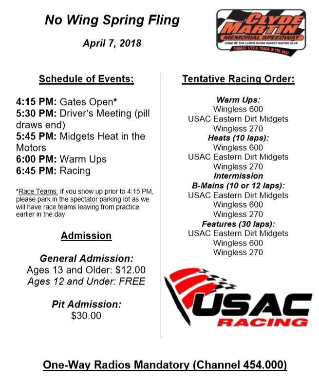 For the third consecutive year, our 2018 racing season kicks off with a blockbuster event featuring the USAC Eastern Dirt Midgets, Winlgess 600s and Wingless 270s.