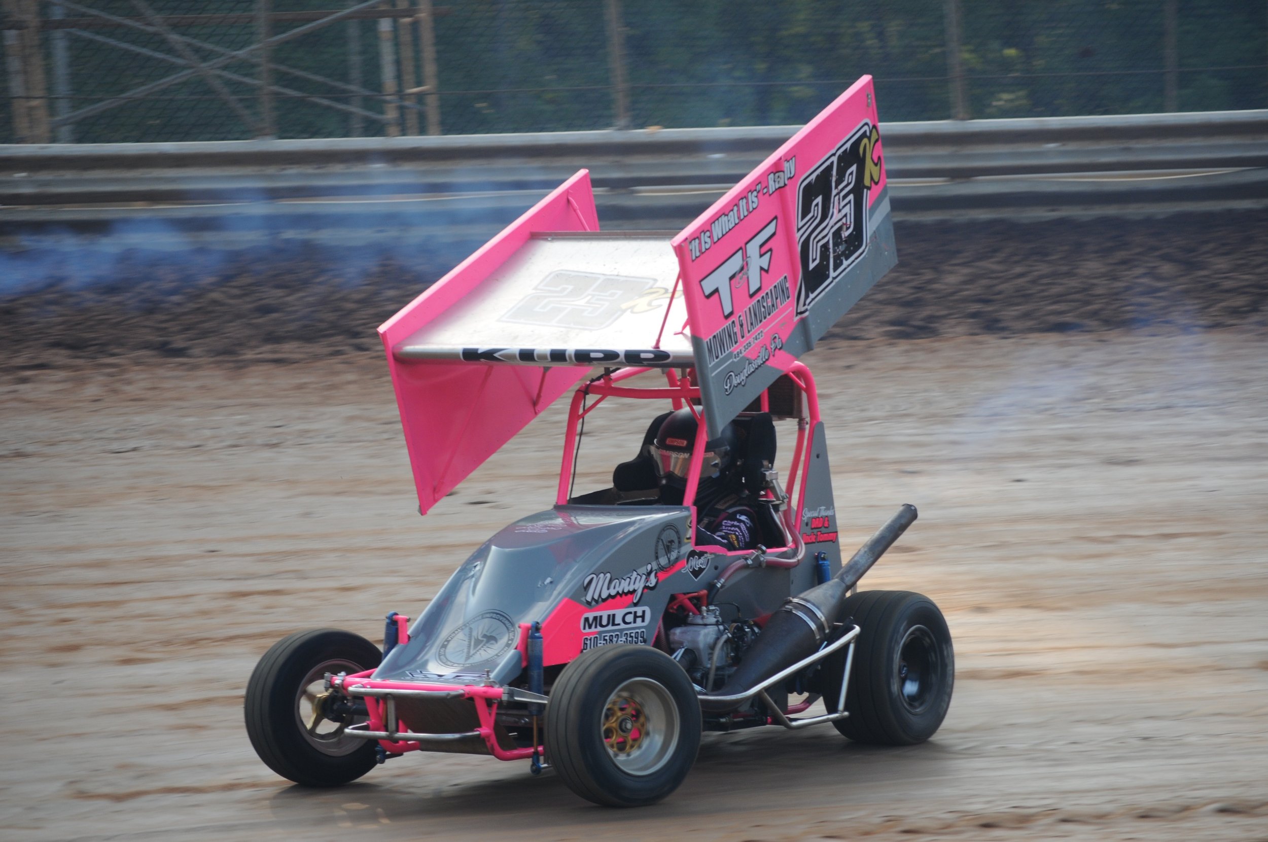 The Hyper Racing Wingless 600 A-Main had a lot to live up to following the wild Winged finish earlier in the night. But the wingless cars responded with what may have been the best race of the season, as Christian Bruno was back in the mix, this time with Brian Carber, all the way to the finish. Carber held off numerous challenges from the Deptford, NJ driver, including a slide-job through the final set of corners that “Big Money” crossed over on. By .003 seconds, Carber won the drag race back to the finish line.